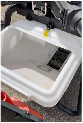 粒剤散布装置には様々な粒の大きさに対応できるよう、4種類のスクリューフィーダーが備えられています。粒剤の排出方法がシャッター式ではないため、粒剤が詰まってしまう心配がなく、参加者からは「使い勝手が良さそう」との声が聞かれました。