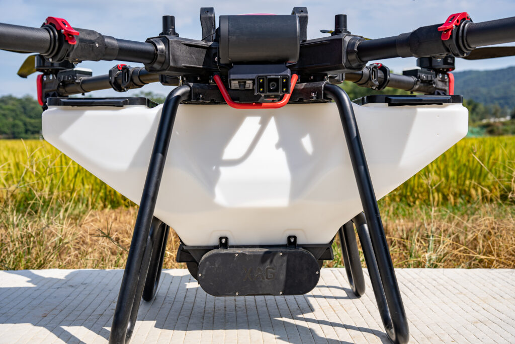 さらに、機体の堅牢性についても好意的な感想が寄せられました。XAG社は農業用機械の専門メーカーなので、アームやランディングスキッド(土台部分)などあらゆるパーツが、農機メーカーならではの頑丈なつくりになっています。防水性・防塵性にも優れて水洗いできるため、「頑丈な設計で遠慮なく洗えるのは嬉しい」「メンテナンスしやすい」との声が聞かれました。(ただし、プロペラのモーター部分は水洗い不可。高圧洗浄機での水洗いも避けてください。)