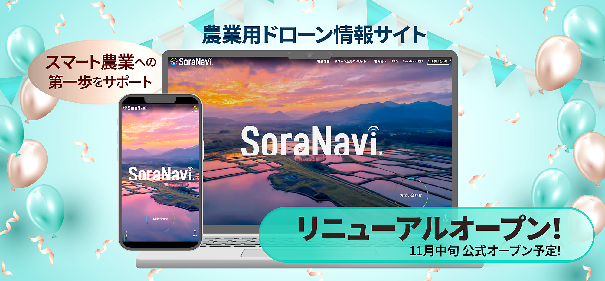 農業用ドローン情報サイト「SoraNavi®」がリニューアル!公式オープンに先立ち、一部ページを先行公開。