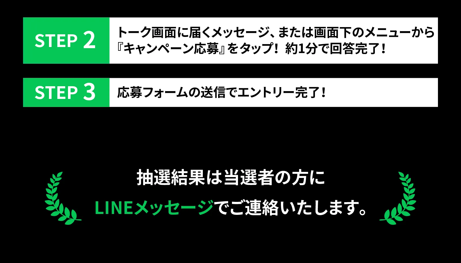 - 当選者の発表はLINEでの当選メッセージ送信をもって代えさせていただきます。
